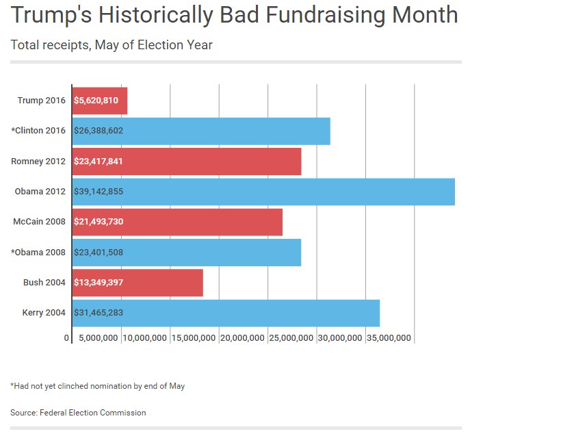 CHART: How Donald Trump's weak fundraising haul compares to past candidates http://washex.am/28M5wDZ pic.twitter.com/rbGwfr82eg