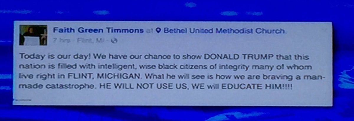 lets see, if and when Hillary shows up in Flint, if she asks her the same? I will bet not, any takers?