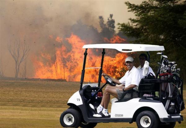 Where is Barack oBLMa golfing today?