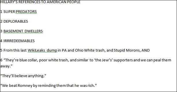 HORRIBLE HILLARY! THIS WHAT SHE HAS CALLED OR SAID ABOUT AMERICAN PEOPLE, she smiles at rallies & probably thinks thesepic.twitter.com/vByHlTzYse