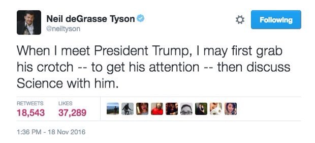 “@dcexaminer: Neil deGrasse @neiltyson Tyson's p̶r̶o̶f̶a̶n̶e̶ plan for meeting Donald Trump"pic.twitter.com/rywo8qBUDk