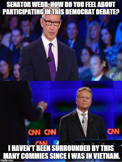 Jim webb should have stayed in the race longer. He coulda been the dem trump. Hes quite the character!pic.twitter.com/KGbdpTWK1b