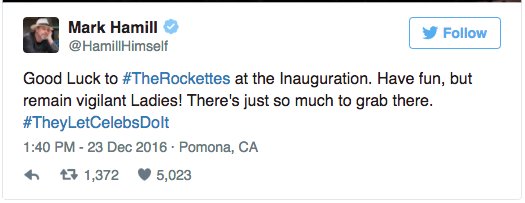 Mark Hamill zings Trump over Rockettes performance http://washex.am/2isCUQj pic.twitter.com/MXV42cEdne