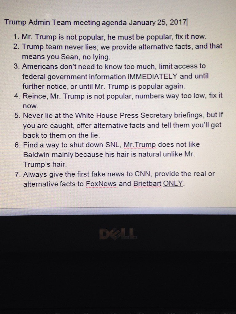 Then read the agenda that I got from one of my sources for a Trump Admin Team meeting. BREAKING NEWS, not FAKE news. LOL!pic.twitter.com/yYDfl7XglZ