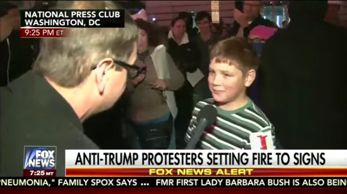 "Gotten away from his dad" in NYC, in a protest w/ n'er do wells wearing masks.