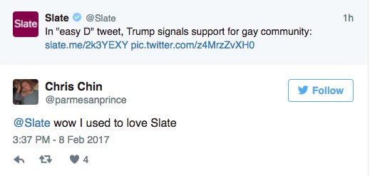 Liberal website claims Trump's "easy D" tweet signals support for gays http://washex.am/2k44CrS pic.twitter.com/hfObfeGlcw