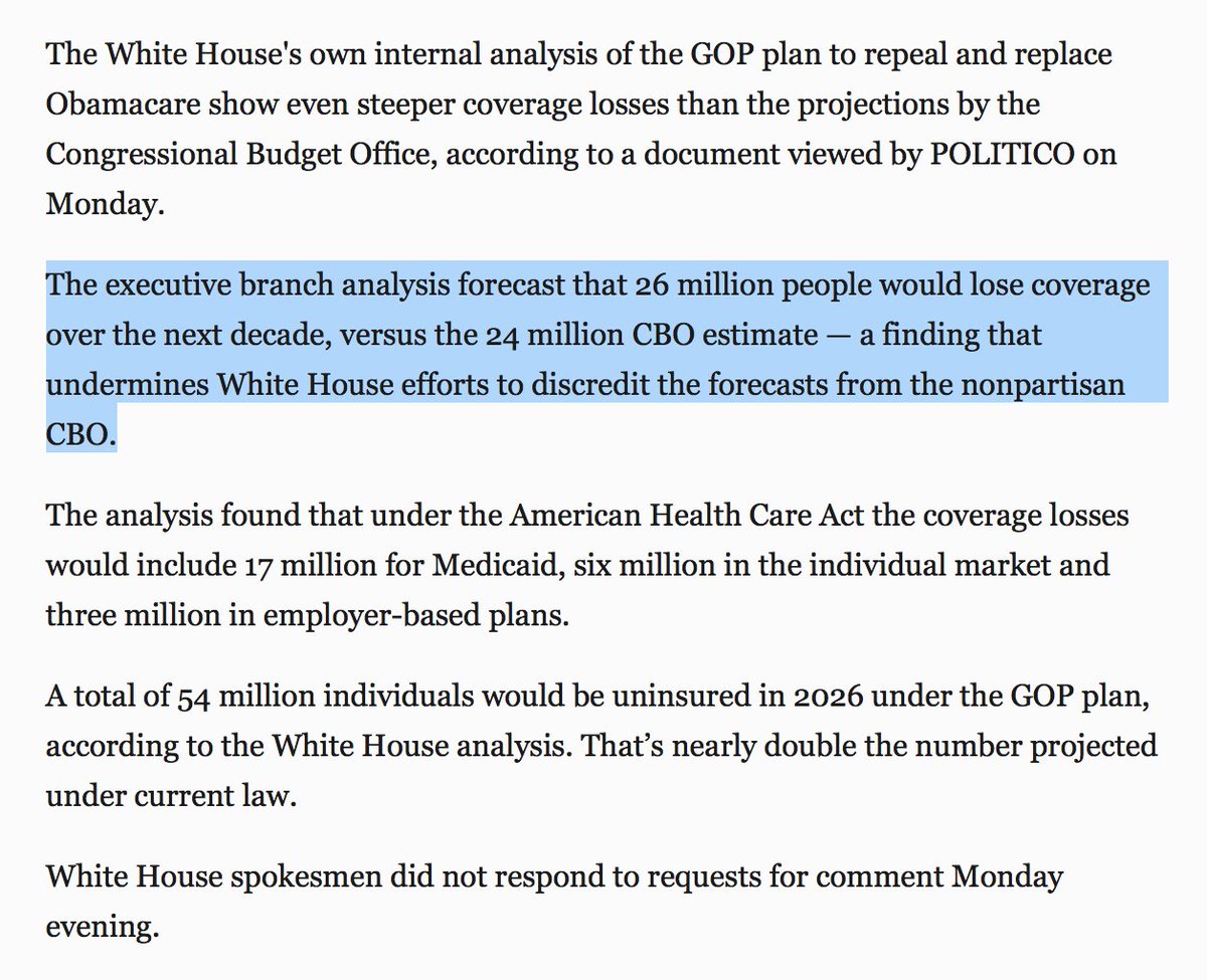 .@dcexaminer The WH says 26 million will LOSE insurance. Still #fakenews?pic.twitter.com/HePBQuAIKV