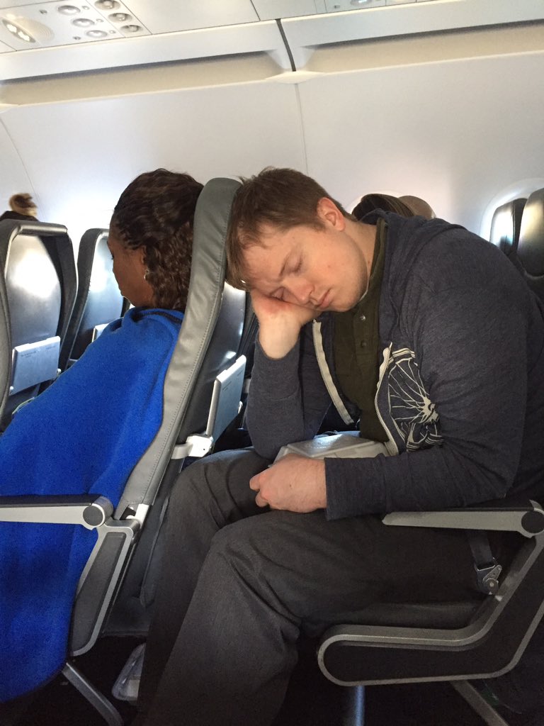 my husband doesn't fit on most airplanes bc of his height (6'3"). We joke about it, but flights are really uncomfortable for him.pic.twitter.com/35APUSoadR