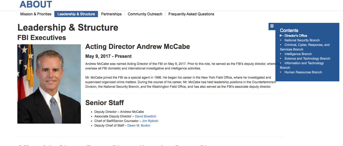 UPDATE: FBI website removes Comey almost 24 hours after firing http://washex.am/2q6URbW pic.twitter.com/wkFY6xTiNR