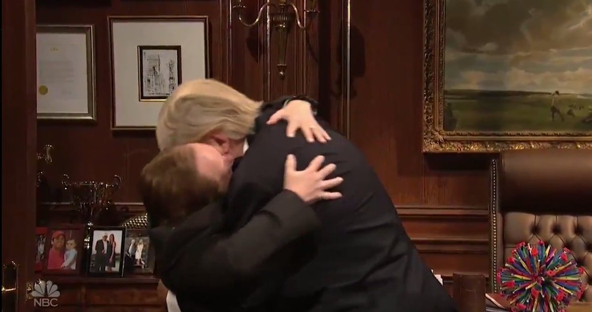 WATCH: Trump gives Sean Spicer the kiss of death as he begs to keep his job on "SNL" http://washex.am/2pKZqI9 pic.twitter.com/f3DUMXuA9R