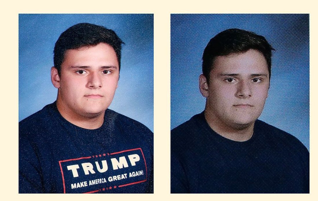 Are graphic tees even allowed for yearbook photos? Likely photoshopped out all graphics on their shirts, no?