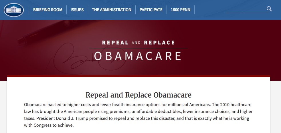 White House launches website on repealing and replacing Obamacare http://washex.am/2sWljsL pic.twitter.com/ECnbEXEEQp