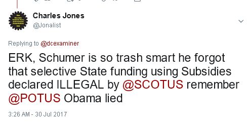 Chuck Schumer spinning a major lie Obama began on Subsidizing select States,
