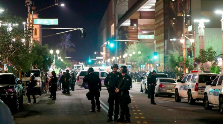 NOTE: Anti-Trump protesters causing violence, attacking police, tearing down barriers.