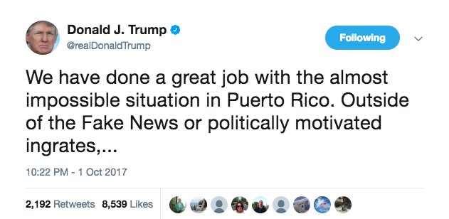 Looks to me like trump response to Puerto Rico was racially motivated