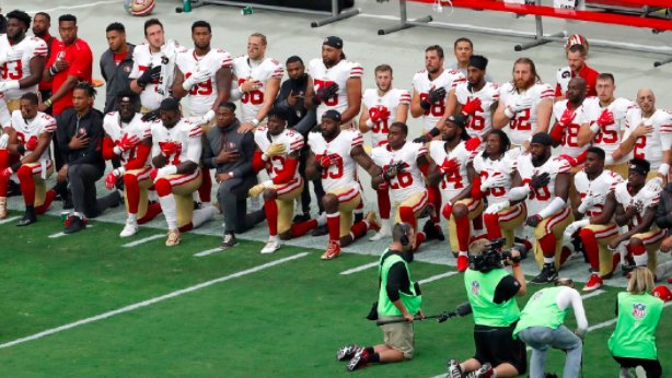 I don't knee to the NFL, Fox or ESPN. I stand for the Flag, get it?