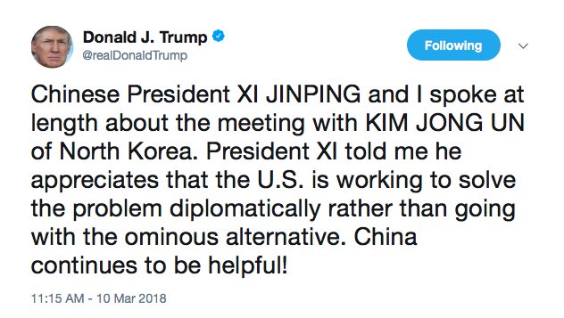 Trump: "China continues to be helpful" with North Korea http://washex.am/2DgHqeP pic.twitter.com/yktioq1Vv5