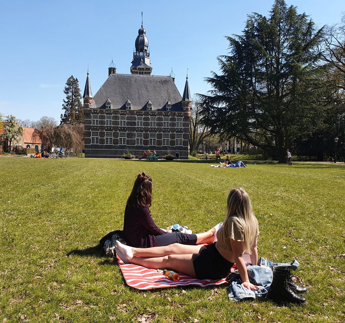 #wijchen, waar vanmiddag kleine groepjes, op ruime afstand van elkaar, van het mooie weer en het uitzicht genoten.pic.twitter.com/pOmX7m6UJJ