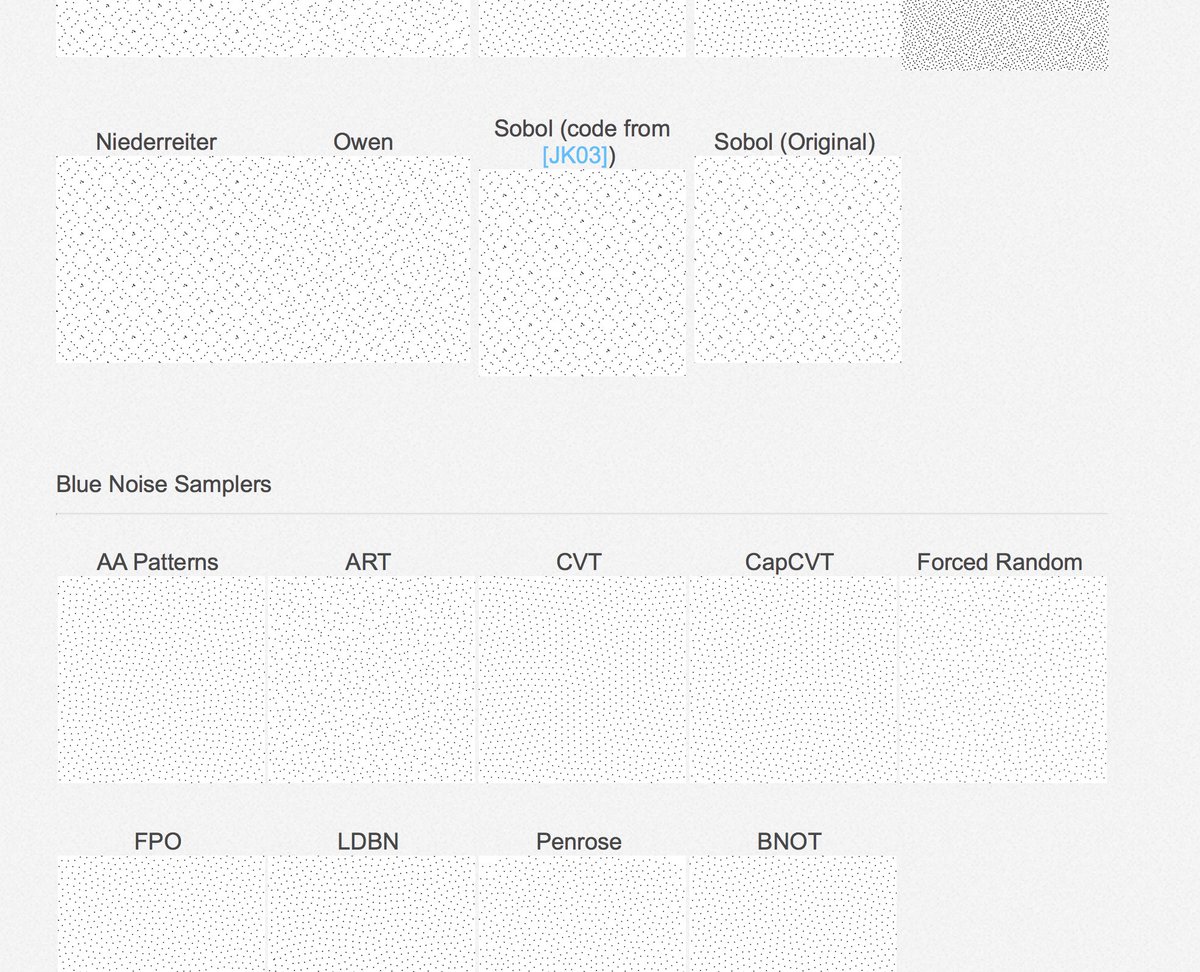 All the material of our EG2018 paper « Sequences with Low-Discrepancy Blue-Noise 2-D Projections » (paper, supplem., video, code, slides) is available. Enjoy... https://perso.liris.cnrs.fr/david.coeurjolly/publications/perrier18eg.html …pic.twitter.com/f1STWYcN3T