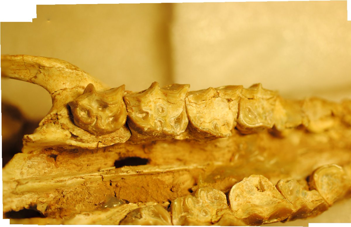 This is UATF-V-002020: a ~15 million-year-old #notoungulate jaw from#Bolivia with one small#tooth. The thick later of cement on the outside (also found in#horses) strengthened and supported this herbivore's ever-growing molars.pic.twitter.com/bUaVPyDEWu