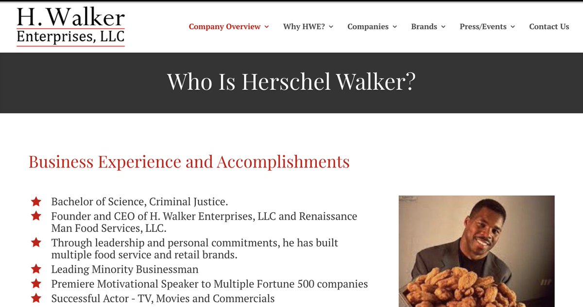 Herschel Walker's company website removed the false claim -- repeatedly mentioned by Walker in motivational speeches -- that he graduated from University of Georgia by returning to get a bachelor in criminal justice. (Screenshots via the Internet Archive's Wayback Machine)pic.twitter.com/sCWRG3hmxi