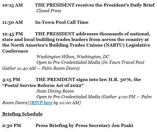 Here’s Biden’s public schedule for today. (Public schedules don’t include all of a president’s activities.)pic.twitter.com/ayRRZNYZyC