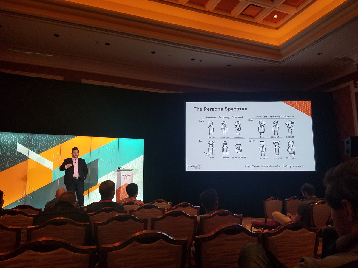 Phillip talks about the persona spectrum with a graphic from Microsoft re: ADA/WCAG compliance