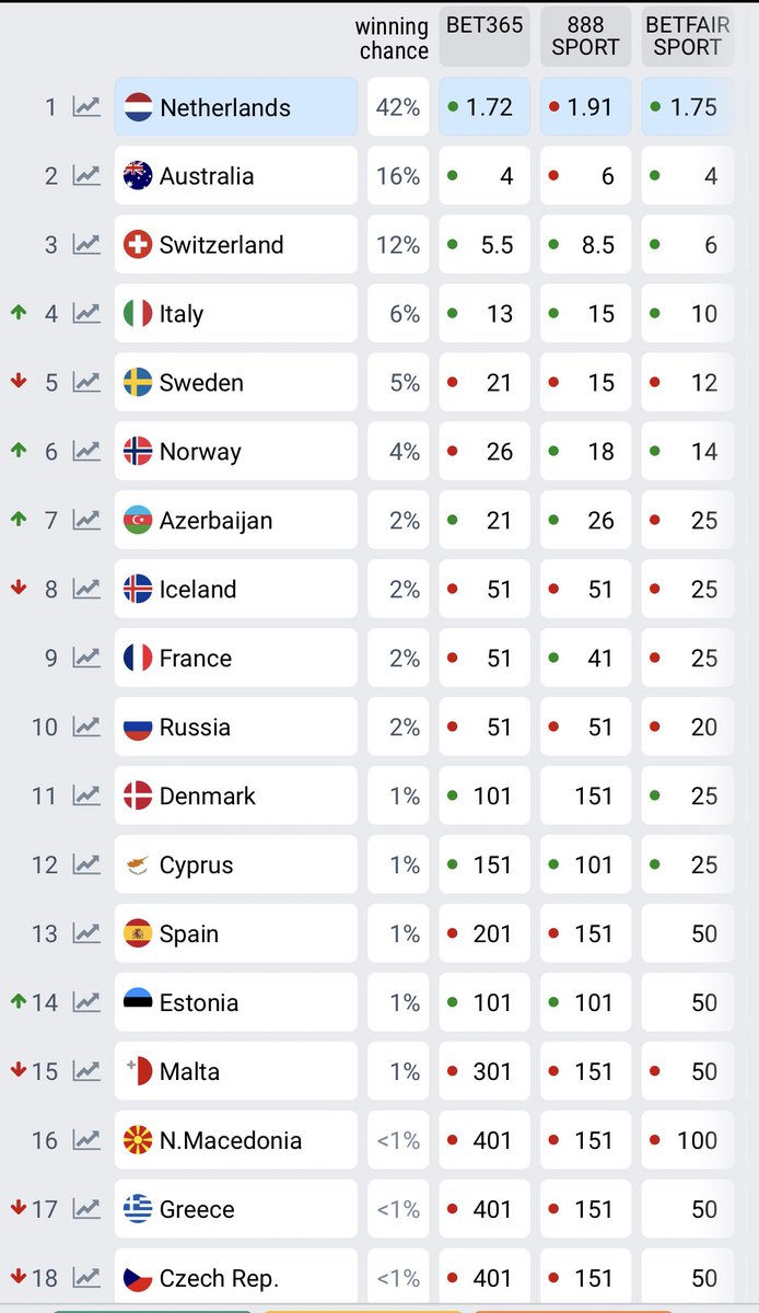 Если оставить Сергея за скобками (тем более за своих голосовать нам нельзя), то должны быть высоко: Швейцария, Франция, Австралия, Исландия, Азербайджан, Испания... ну и далее. Поглядим