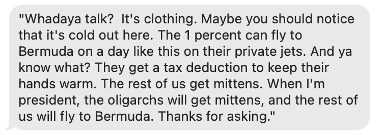 parka and mittens, and Hightower crafted his imagined response. We are CRACKING UP. #MittenRevolutionpic.twitter.com/mNcE9fl3rS