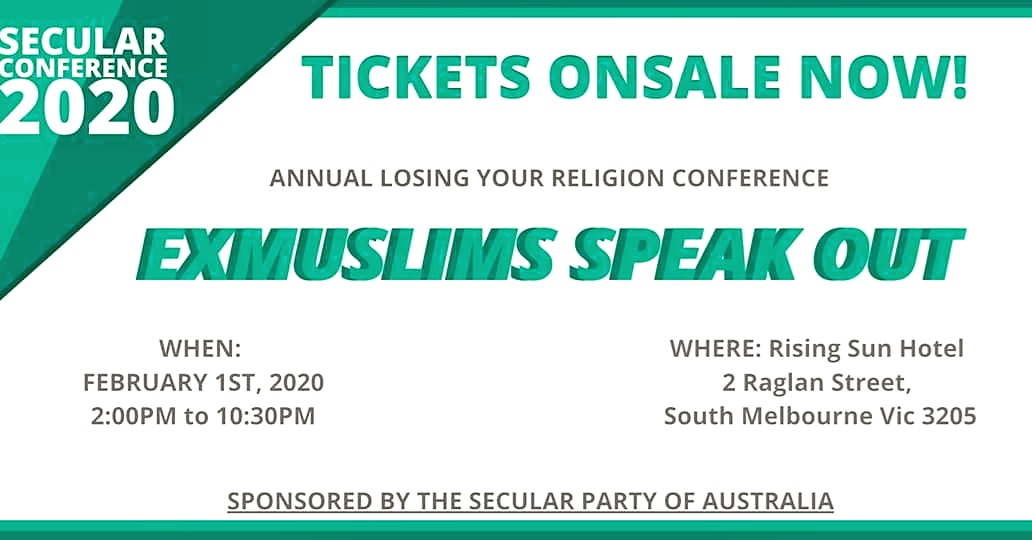 Losing your religion conference 2020 Click here for tickets: https://www.eventbrite.com.au/e/losing-your-religion-ex-muslims-speak-out-tickets-87608139303?aff=eand …