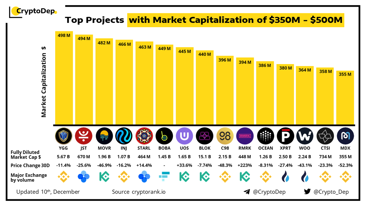 Top Projects with Market Capitalization of $350M - $500M