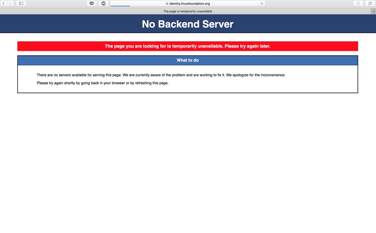 #linuxfoundation is having bad day today. Someone was not ready for the peak load, no backend to serve the page, no order, no money on black friday :)pic.twitter.com/SknIpZVAhJ