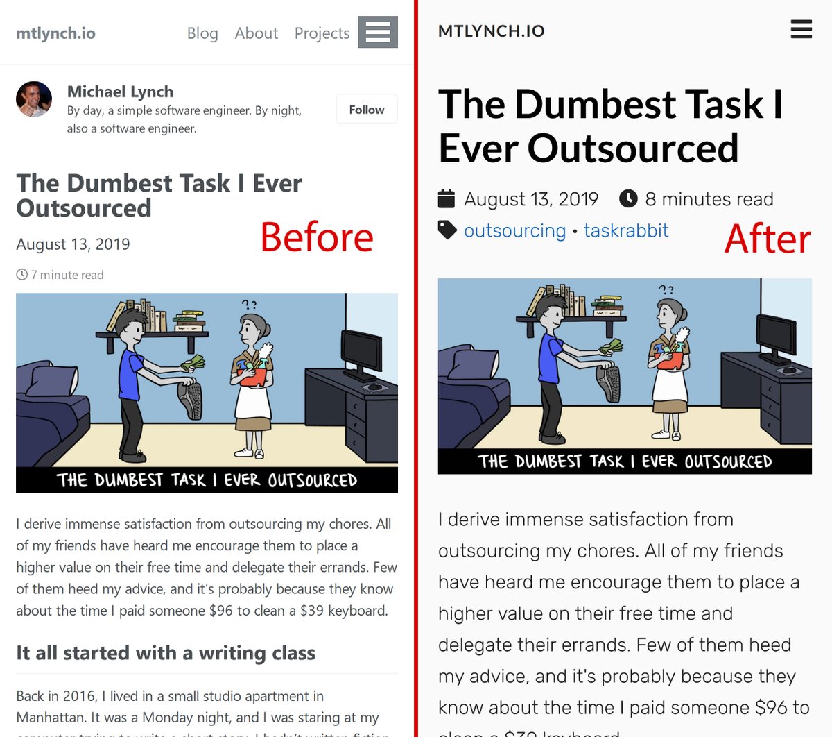 It's been a good few years with Jekyll, but I finally ported my blog over to Hugo with a more minimalist theme. https://mtlynch.io/ pic.twitter.com/K6Jcac3fuJ
