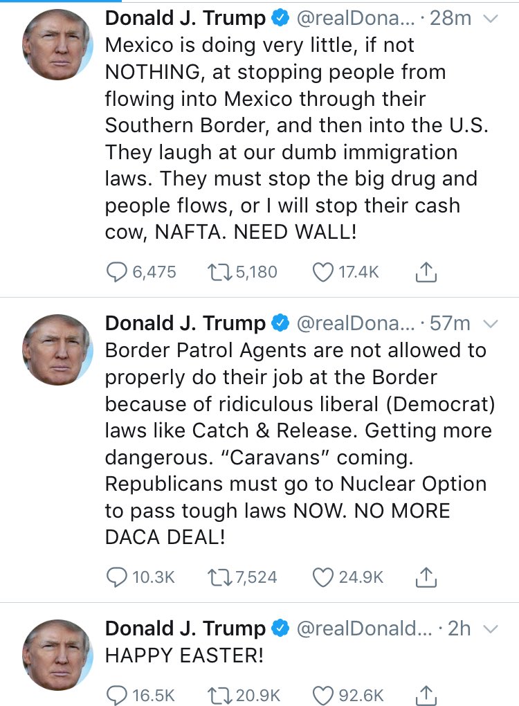 Easter celebrates the rising from the dead of Jesus, a Middle Eastern man whose mother and foster father crossed borders to escape persecution; who was lost while traveling as a boy with his family, most likely in a caravan, to Jerusalem; and who told us to welcome the stranger.pic.twitter.com/Iva07truWG