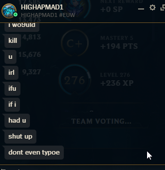 This is not bannable i guess, its fine if they just run it down, dance next to enemies and int if they dont type in chat...pic.twitter.com/7D2GSCvv68