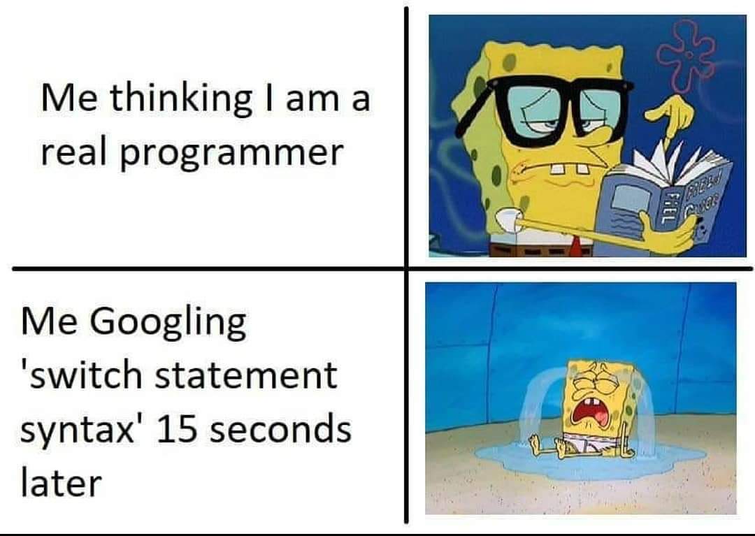 When you get your first job and you feel helpless because you have to google /reference everything !!