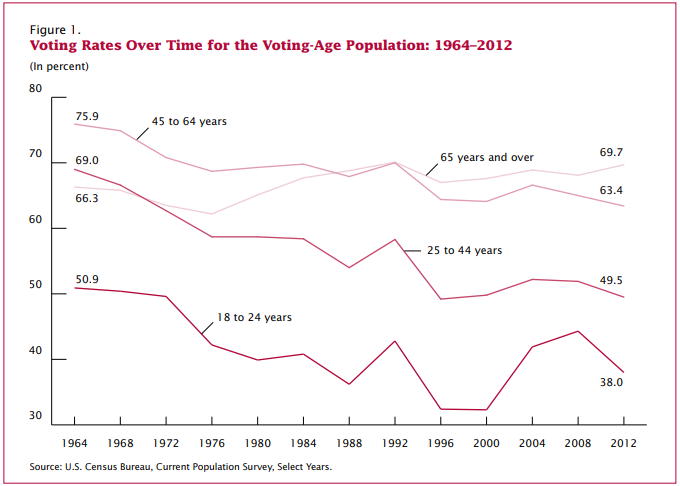 In 2016 (which is not on that chart), turnout in the youngest cohort bumped up slightly -- the only group that did -- but it still lagged all other age groups, by a lot.