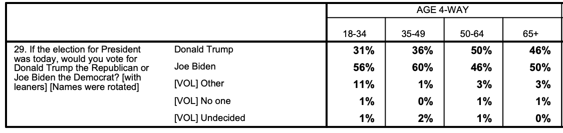 Looking forward to @11thHour tonight, talking about how young people changing America. Latest @MonmouthPoll shows Biden-Trump a draw with voters over 50. Problem for Trump is, @JoeBiden leads by 25 points among voters < 50, which are 47% of sample. Overall, Biden +11.pic.twitter.com/t1eT9AZjGV