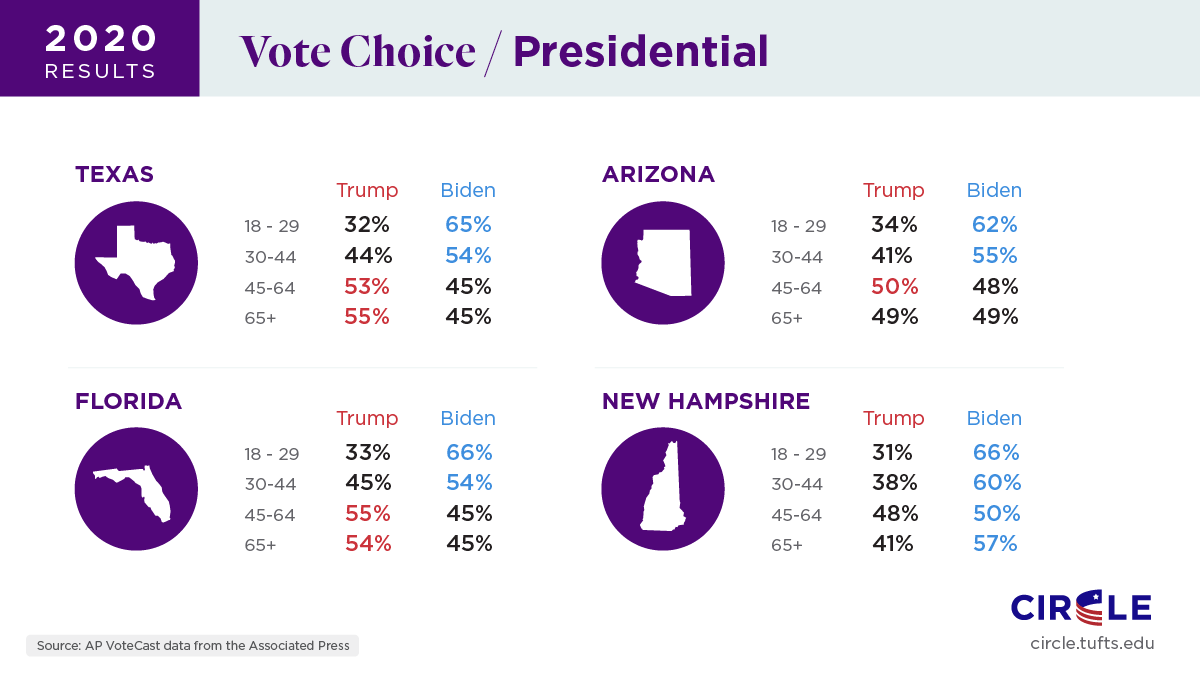 NEW: In some of the most hotly contested 2020 battlegrounds, young voters are keeping Joe Biden competitive in states like Texas, Arizona, and Florida—and they helped propel him to a win in New Hampshire.