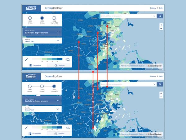 Dramatic increases in education levels in #Waltham, #Medford, #Dedham, #Malden over last decade. #censusexplorerpic.twitter.com/lB4vf13Sgp