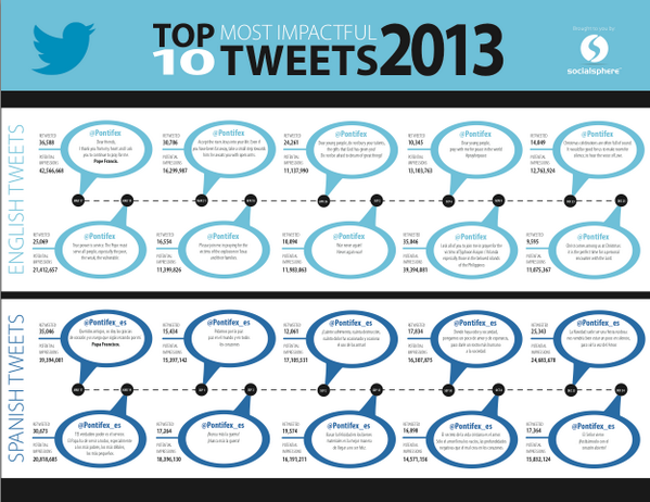 #PopeFrancis' Most Shared Tweets (English & Spanish) of 2013 via our team @SocialSphere.pic.twitter.com/y6BYawnxzx