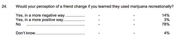 @dbernstein Wld your opinion of a friend change in + or - way if you learned they wld judge you differently if they thought you smoked pot?