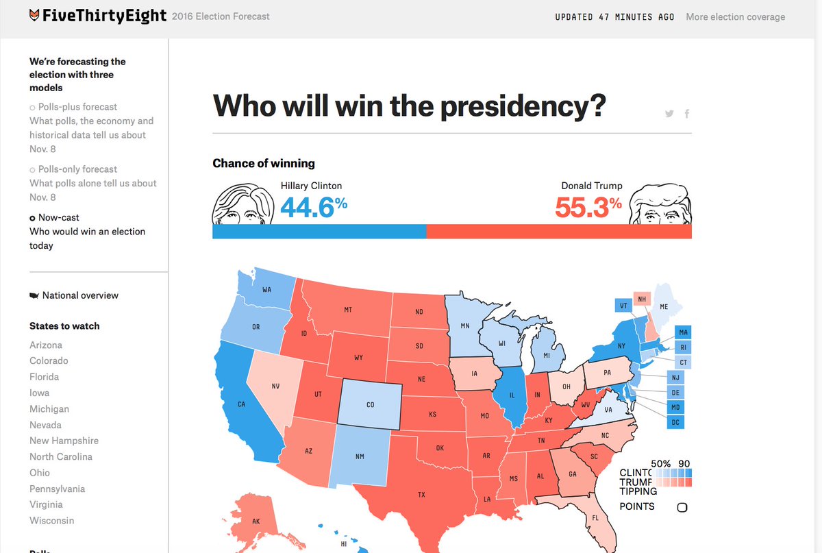 Anyone talking about @FiveThirtyEight Nowcast? Trump 55% chance of winning if election were today. #ThursdayThoughtspic.twitter.com/6BGFX1z35L