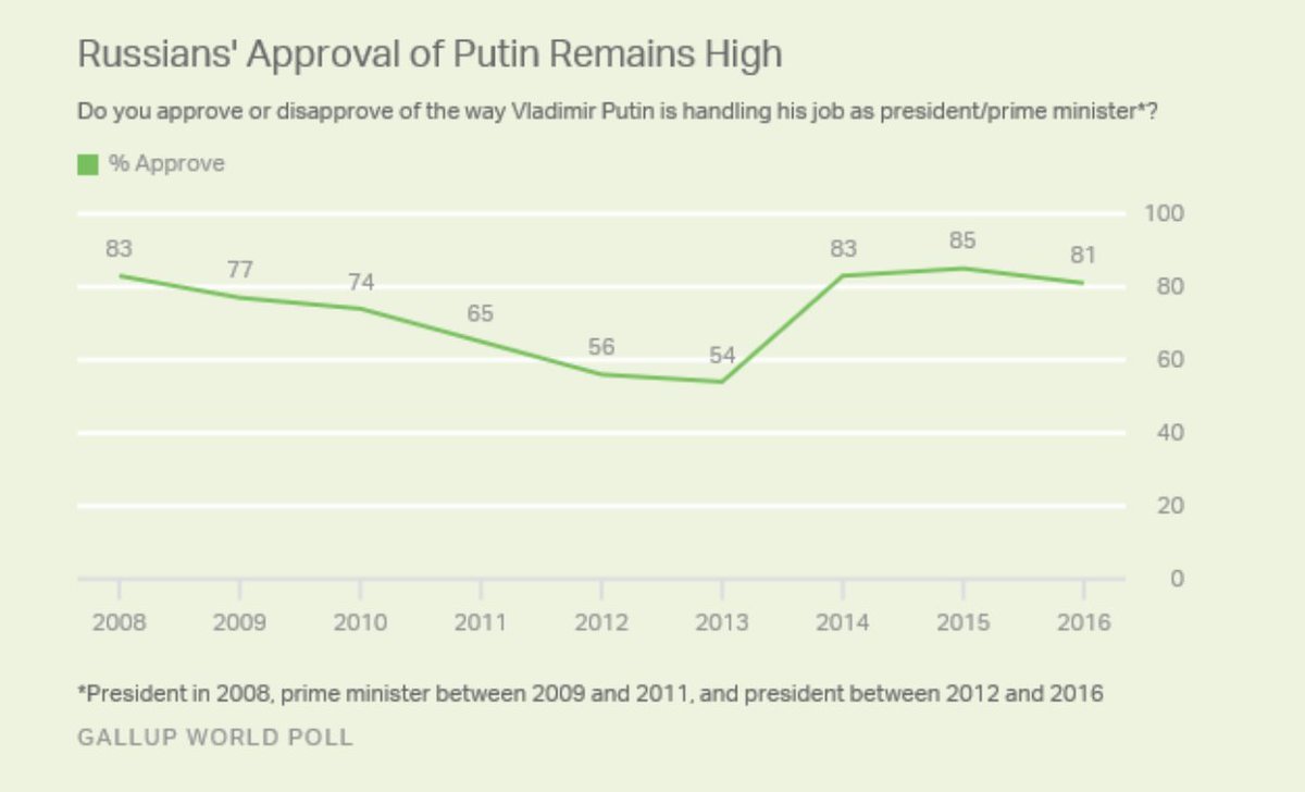 . @Gallup poll in #Russia shows #Putin's approval in 80's. This is like Hillary's 65%+ fav b4 campaign. Easy 2 look good when no competitionpic.twitter.com/YEoTCy9fQ0