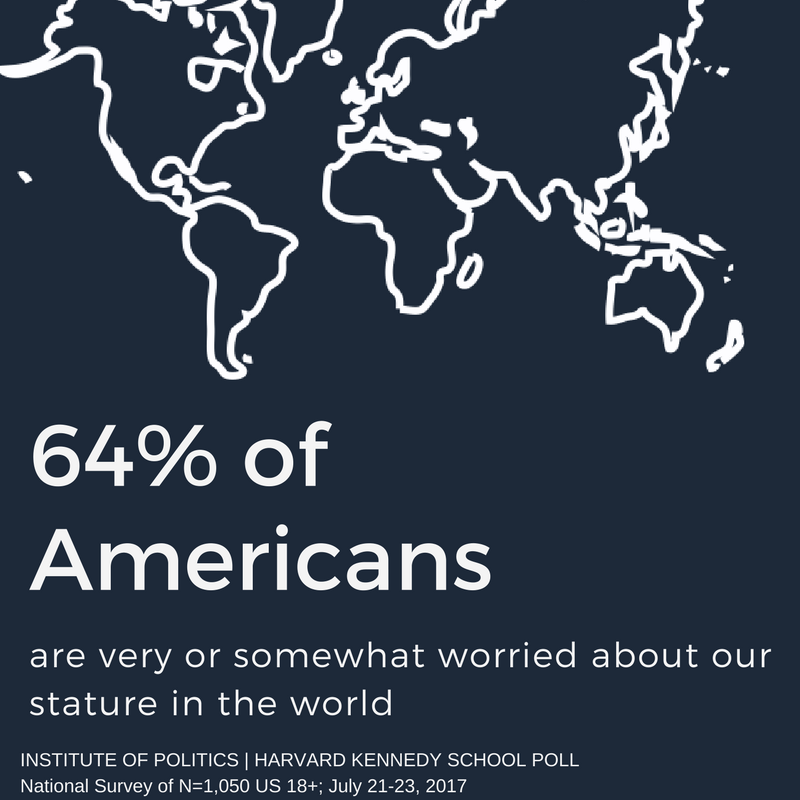 At 6-month turn of Trump admin, our new @HarvardIOP poll finds 64% of adults/63% of #Millennials worried about America's stature in world.pic.twitter.com/u3VCvjpa4Q