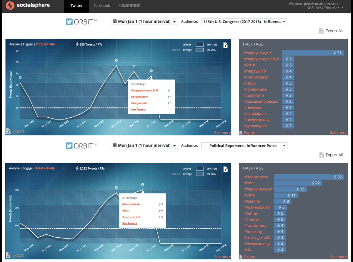 Our #ORBIT dashboard analysis of #Washington political media shows more interest in #IranProtests #Iran #تظاهرات_سراسری.