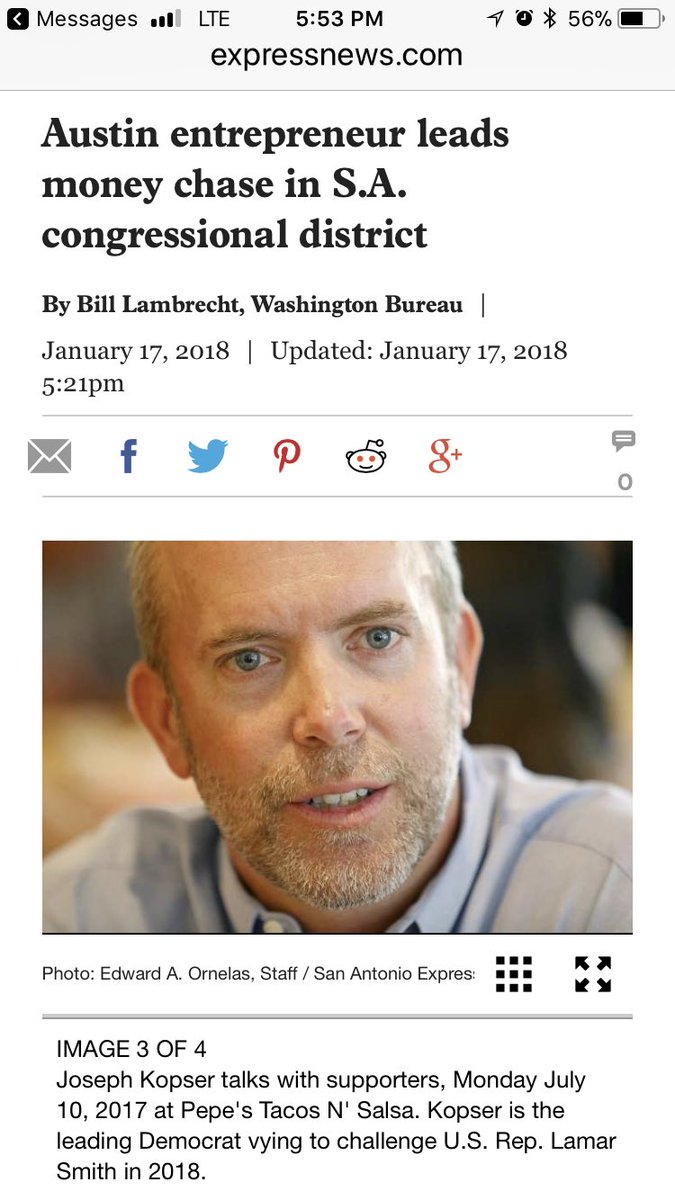 Proud of my friend, Army veteran, Pentagon tour guide to my family, @Kennedy_School grad @JosephKopser for leading the field in money raised, new ideas generated and overall energy. Need more like him. #TX21https://twitter.com/JosephKopser/status/953778794632040448 …