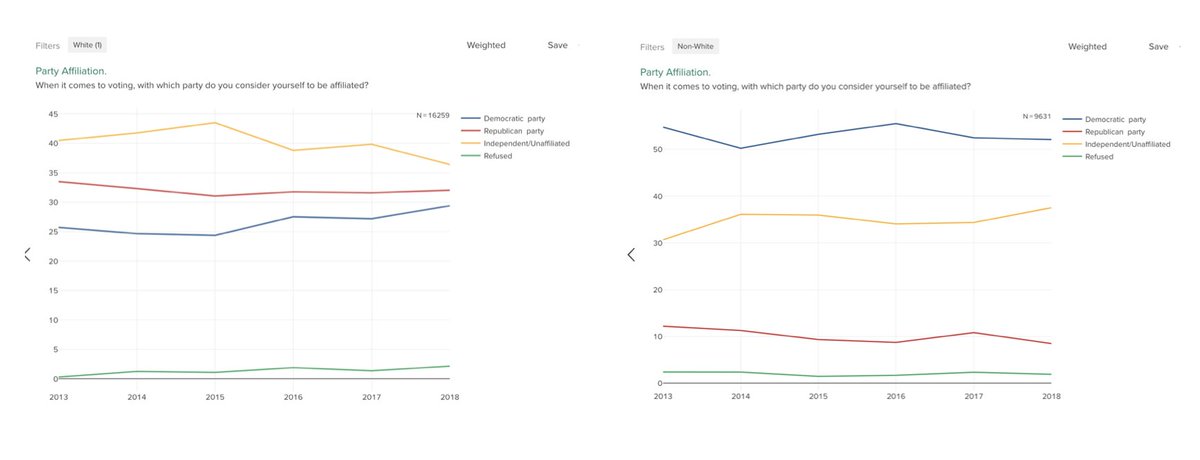 Here's a snapshot of 25k @HarvardIOP cases since 2013 of party id by white 18-29 and non-white.pic.twitter.com/23HXLgiQn5