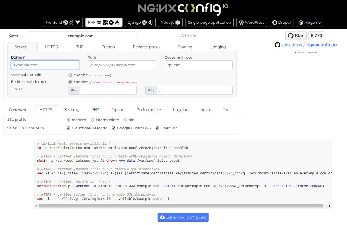 Don't have time to configure Nginx? Here is a quick config file generator for Linux and Unix sysadmins/developers. Personally, I use ansible for mass management but this is very nice for personal site or blog or home server or anything else. https://nginxconfig.io/ pic.twitter.com/eFLsY8y4qW