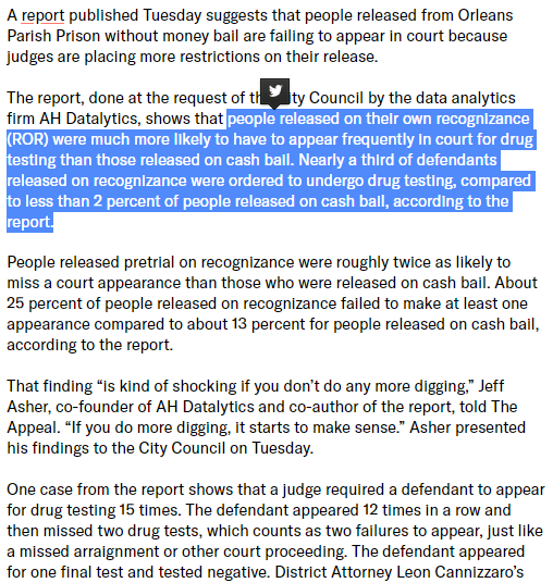 @survivepunishNY and others have been saying—the real threat in this moment is that the carceral net will likely WIDEN under cover of progressive reform. https://theappeal.org/in-new-orleans-drug-testing-is-imposed-more-frequently-on-people-released-without-money-bail/ …pic.twitter.com/Z01cGjSCg1